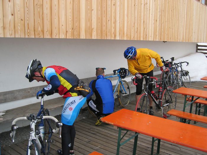 Viele Rennradler sind froh, wenn sie einen dieser Pässe bezwingen. Der Gampenpass am Tag eins war uns nicht einmal ein Gruppenfoto wert. Am Jaufenpass Tag zwei holten wir das nach. Für viele Rennradler ist das Stilfser Joch der Pass der Pässe, für mich ist es die Südrampe des Timmelsjochs, die wir am Tag vier bezwangen.